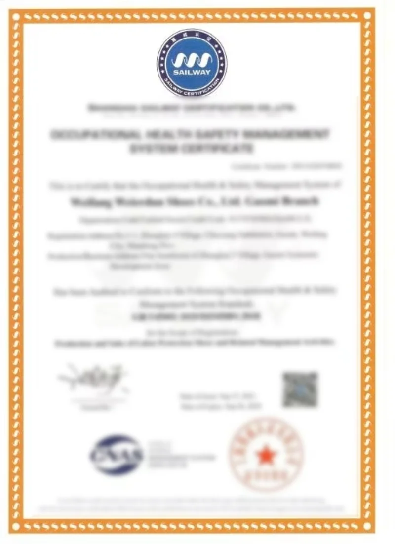 Sinosense Safety Shoes Industry Co., Ltd. is a safety shoe manufacturer that specializes in research, design, and production. The factory spans 20,000 square meters with advanced production lines, producing 7000 pairs of shoes daily. We offer a range of safety shoes, including anti-smashing, anti-stab, anti-static, insulated, chef's, and anti-skid shoes, meeting various international standards (SBP, S1, S2, S3, S1P). Our products are exported globally, with over 500 styles and 1 million pairs in stock.