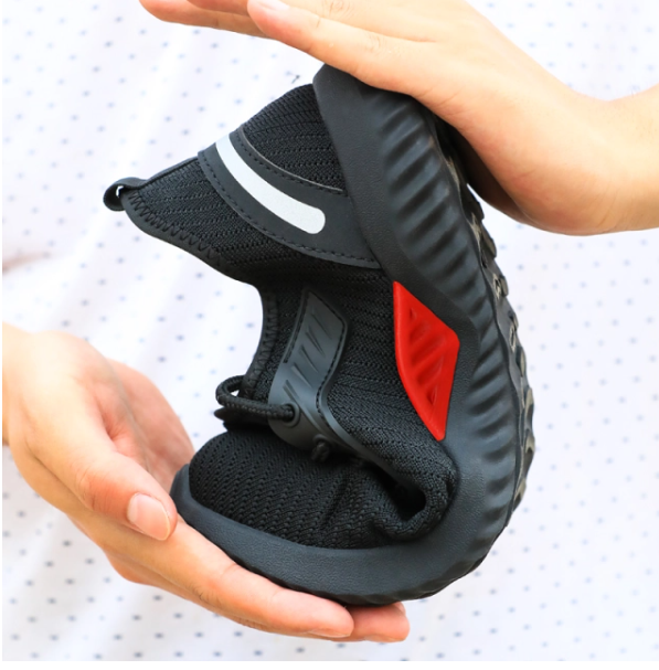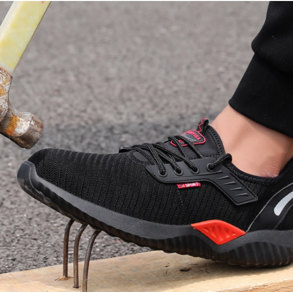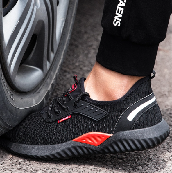 Breathable Fabric Black Red Mens Safety Work Shoes With Toe And Sole Protection