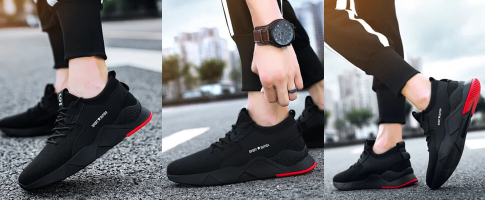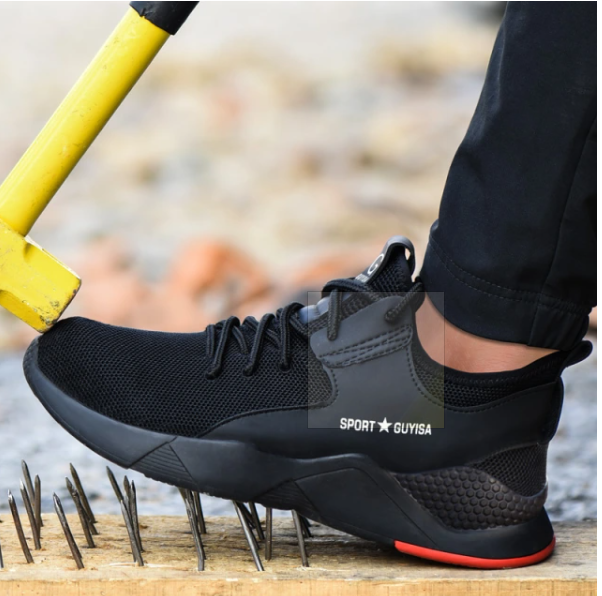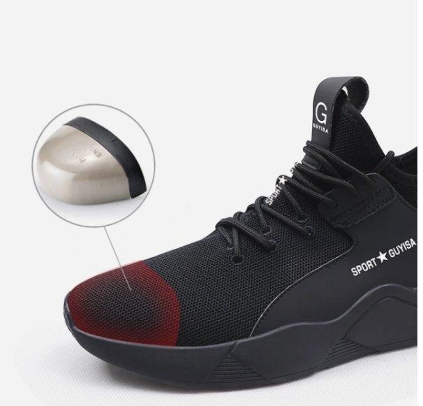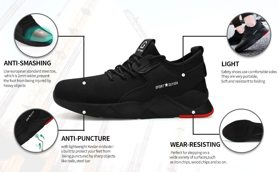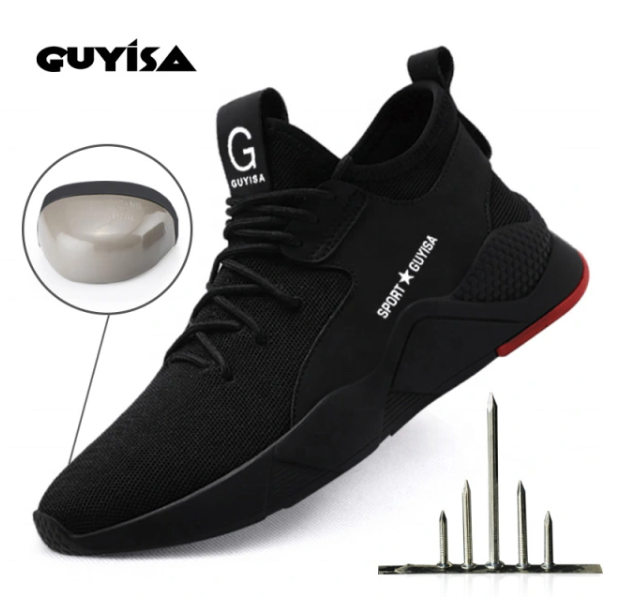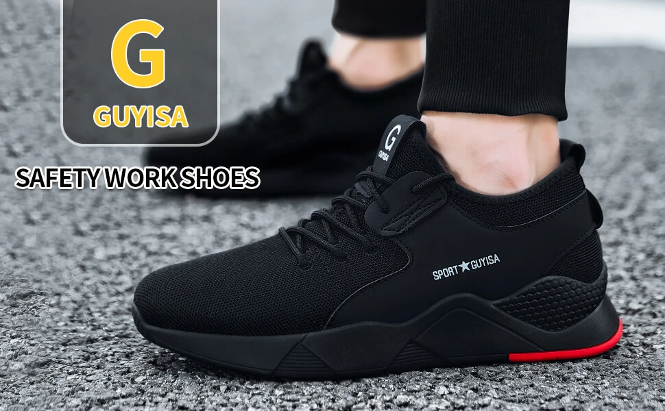 GUYISA 8186 Black Soft Safety Work Shoes, Breathable High Elastic Safety Shoes for Steel Toe Men Shoes