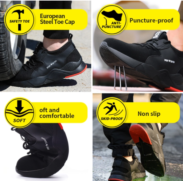 This is our new safety shoes, with anti-slip rubber outsole design, good slip resistance, breathable fly-woven mesh upper, construction site work, outdoor