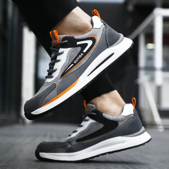Fashionable non-slip rubber bottom steel toe safe sports shoes