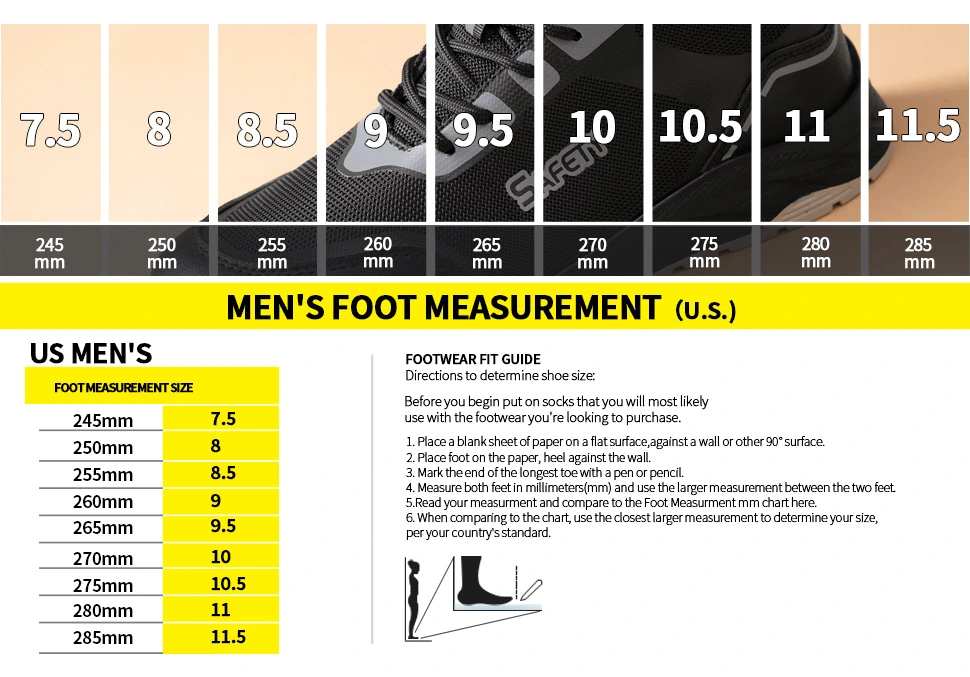 The toe contains an European standard steel toe.It has passed CE and ASTM certification.The steel toe can withstand a resistance of 15 thousand Newtons.The European steel toe is a protective steel toe that meets the anatomical requirements.It is suitable for a spacious toe box and excellent arch support,Wich can support the natural contour of the foot.