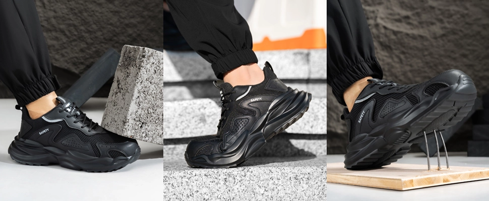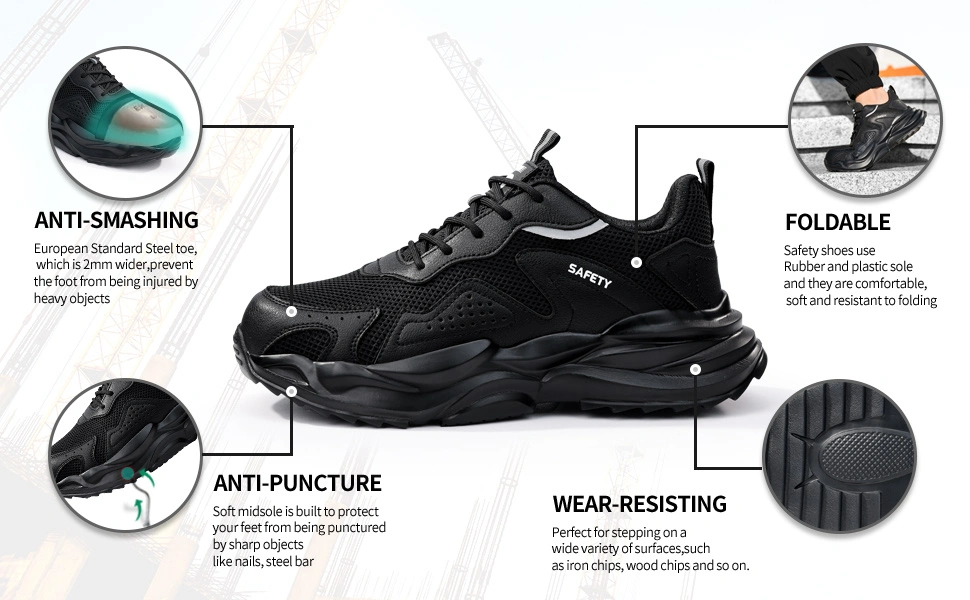 The toe contains an European standard steel toe.It has passed CE and ASTM certification.The steel toe can withstand a resistance of 15 thousand Newtons.The European steel toe is a protective steel toe that meets the anatomical requirements.It is suitable for a spacious toe box and excellent arch support,Wich can support the natural contour of the foot.