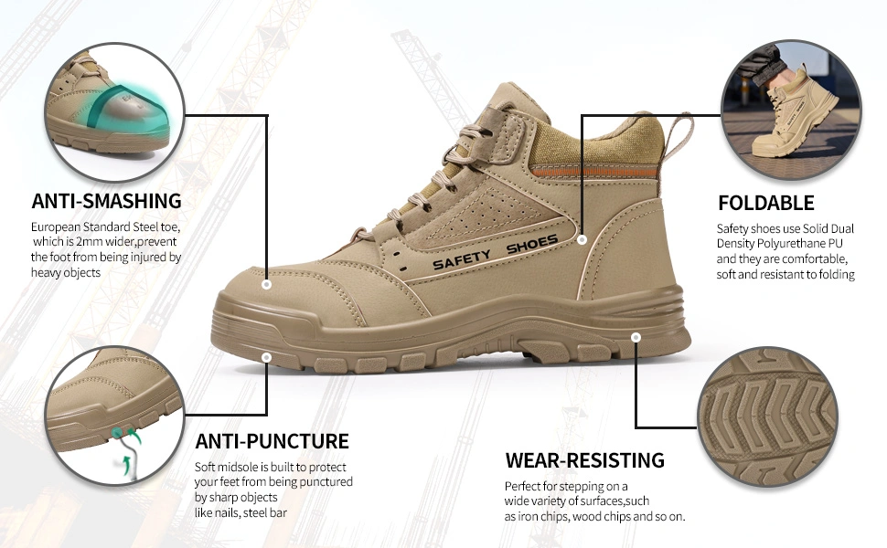 The toe contains an European standard steel toe.It has passed CE and ASTM certification.The steel toe can withstand a resistance of 15 thousand Newtons.The European steel toe is a protective steel toe that meets the anatomical requirements.It is suitable for a spacious toe box and excellent arch support,Wich can support the natural contour of the foot.