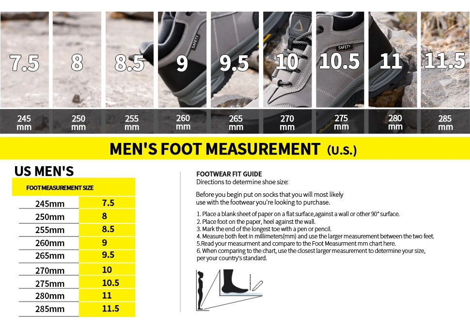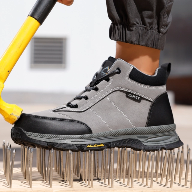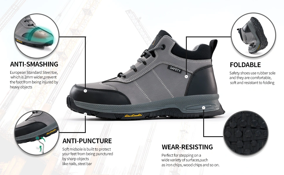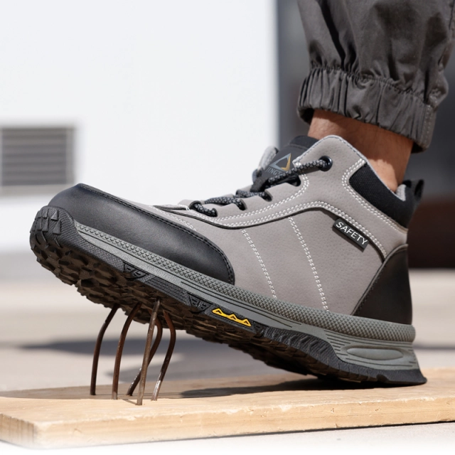 The toe contains an European standard steel toe.It has passed CE and ASTM certification.The steel toe can withstand a resistance of 15 thousand Newtons.The European steel toe is a protective steel toe that meets the anatomical requirements.It is suitable for a spacious toe box and excellent arch support,Wich can support the natural contour of the foot.