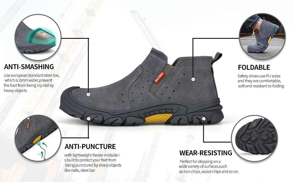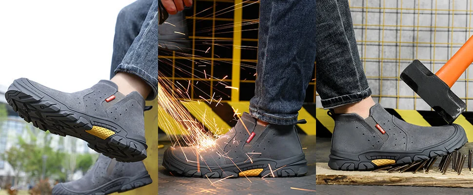 The steel toe head we use is European standard steel toe head, which has passed CE and ASTM certification. Not only can this wide and tall steel toe end withstand 200 joules of impact, it also makes your job easier. Therefore, your toes won't be hurt by the toe cap that is too tight. The steel toe cap in our safety shoes weighs only 550-650 grams, which is lighter and softer than ordinary composite steel toe caps.