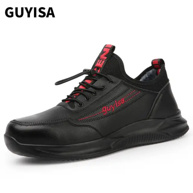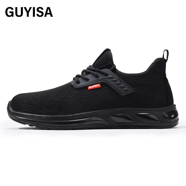 GUYISA New black sports series anti - impact European standard steel toe cap Kevlar sole labor protection shoes Four Seasons shoes China factory  a lot of stock