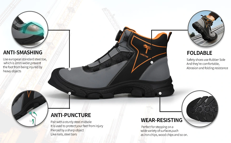 Steel toes adopt European standard high-density steel toes. First of all, the European standard steel toe cap is taller and wider than ordinary steel toe caps, which will not cause discomfort to the toes. High-density steel is more wear-resistant than ordinary steel and can extend the life of the toe cap. Our steel head caps are CE and ASTM certified and can withstand a resistance of 1500 Newtons, which is a great way to protect your feet from being stabbed and punctured by heavy objects