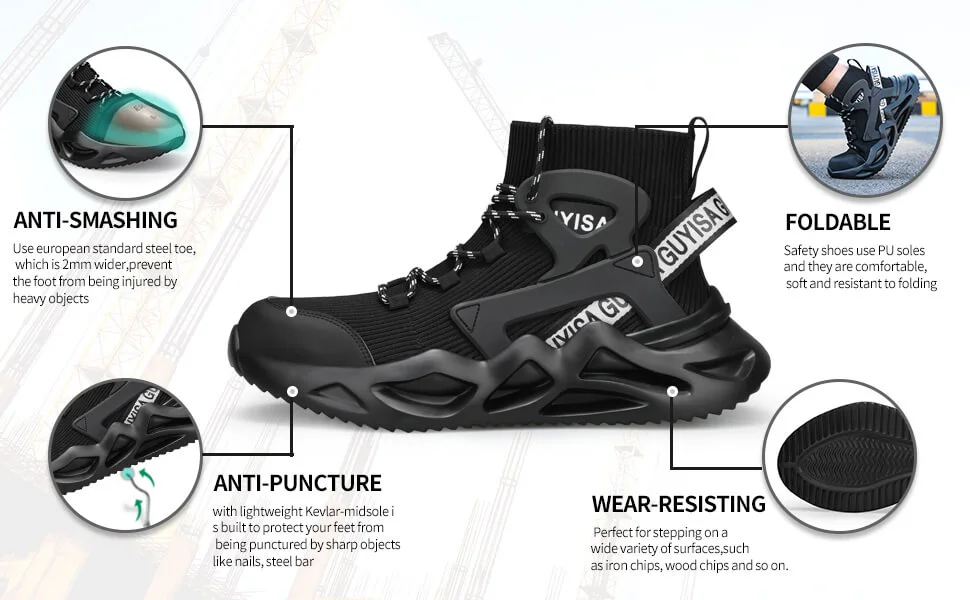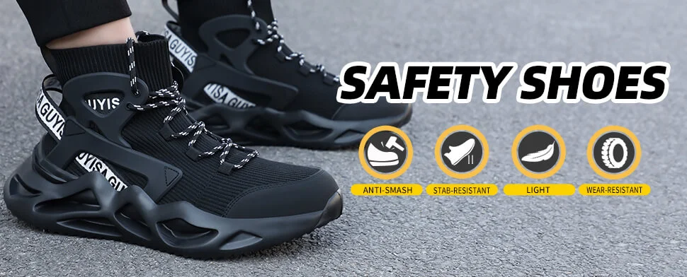 GUYISA 0203 Lightweight PU Sole Safety Shoes Men's Non-Slip High Elastic Steel Toe Hiking Shoes Men's Brand Safety Shoes.
