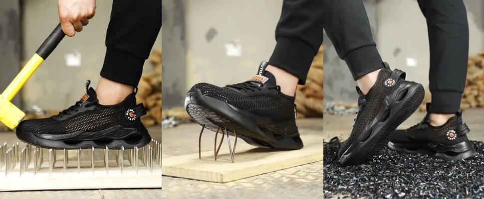 1. The safety shoes are suitable for buildings, factories, mountaineering and other environments. The characteristics of shoes are anti smashing and anti piercing.