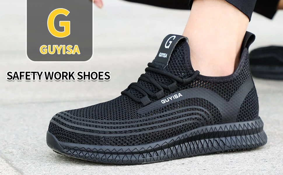GUYSIA 1093 black breathable summer work shoes , Men's Anti-Slip Breathable Safety Work Shoes With Steel Toe For Construction Site