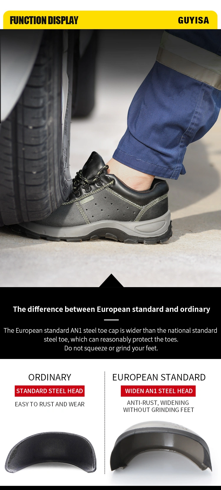 We are professional work safety shoes manufacturer, our work shoes brand is GUYISA. Our company produces a wide range of styles of safety shoes and performance shoes. My factory is in Weifang, Shandong. The company has a strong ability to produce shoes. It can produce about 5,000 to 10,000 pairs of shoes a day. The company has professional design and development personnel and quality inspectors. The products have passed CE and ASTM certifications in terms of quality and style, and are very popular in the international market. We accept customization of shoes and trademark brands, if you want to know more, you can contact our customer service to learn more.