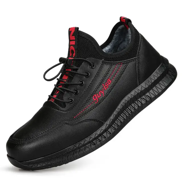 GUYISA safety shoes lined with cotton for winter wear-resistance, microfiber leather upper waterproof, steel toe anti-smashing,suitable for various workplace